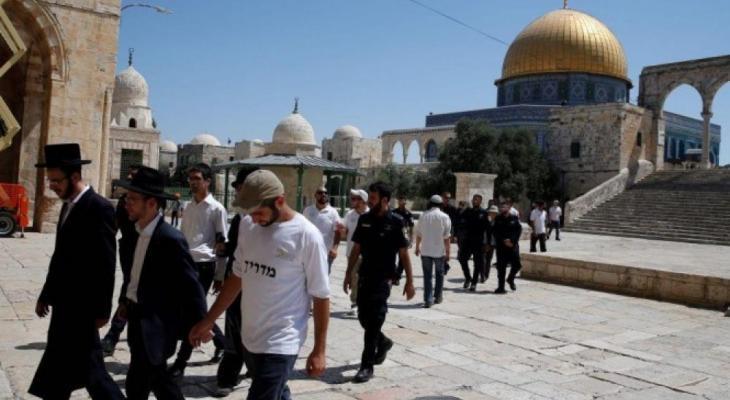 وقال شهود عيان في المكان، إن المستوطنين اقتحموا باحات المسجد انطلاقا من باب المغاربة وسط حراسة مشددة من شرطة الاحتلال، وتجولوا في باحات المسجد بشكل استفزازي قبل أن يغادروا المكان.