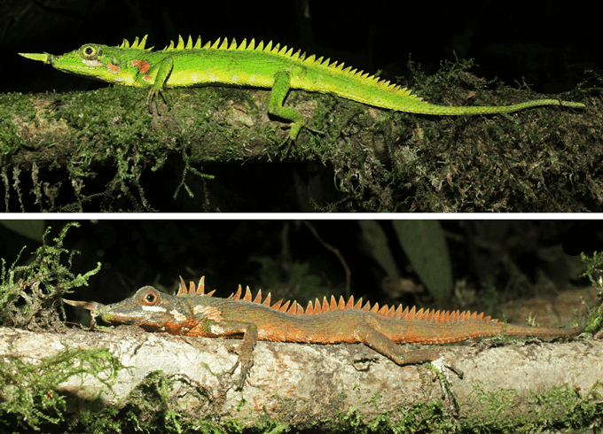 هذا وكان عالم الأحياء محظوظًا، ووجد على إحدى الأشجار سحلية خضراء زاهية. قام العالم بقياس الحيوان وتصويره وشاهد سلوكه قبل إطلاقه في البرية.