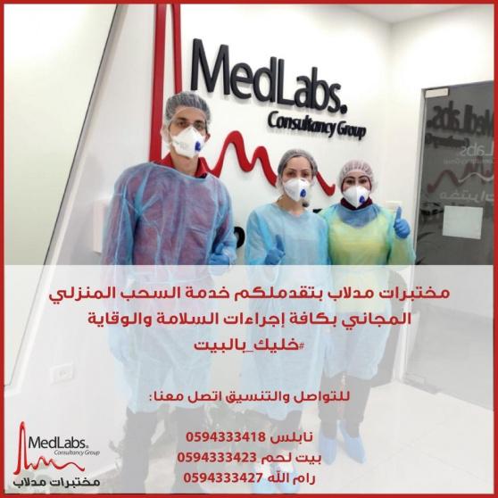 وتتميز مختبرات مدلاب بأنها أول من أطلق خدمات السحب المنزلي عبر الوصول للمواطنين والمرضى الراغبين في إجراء فحوصات مخبرية في منازلهم وأماكن عملهم ومكاتبهم مع الأخذ بعين الاعتبار كبار السن والمرضى الذين تتعذر عليهم الحركة بسبب المرض أو بسبب حظر التنقل وهو ما وفر عليهم من عناء وتكاليف التوجه للمختبرات وذلك عبر فريق مختص بحسب ما يوضح عبد المعطي النمر المدير الإقليمي للمختبرات في فلسطين، وهذه الفكرة كان لها الأثر الإيجابي والكبير في تقديم الخدمات المخبرية خلال فترة إنتشار كوفيد 19 في فلسطين وإتخاذ الحكومة الفلسطينية إجراءات وقائية للسلامة ومنها الحد من الحركة والإغلاقات للمناطق التي جرى إكتشاف حالات بالإصابة فيها.