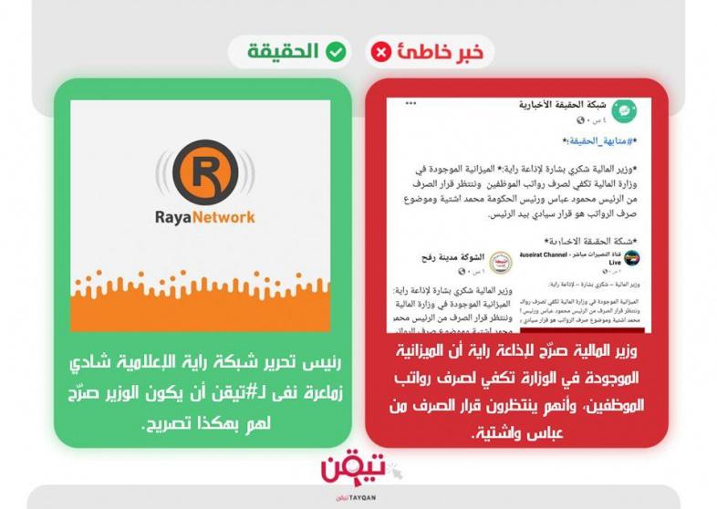 تنفي إذاعة وشبكة راية ما تناقلته عدد من صفحات وسائل التواصل الاجتماعي منذ الامس حول رواتب الموظفين على لسان وزير المالية.
