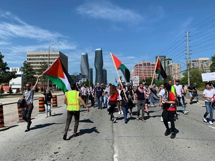 شهدت مدينة تورونتو الكندية تظاهرة رفضاً لمخططات الاحتلال الإسرائيلي ضم أجزاء من الضفة الغربية.