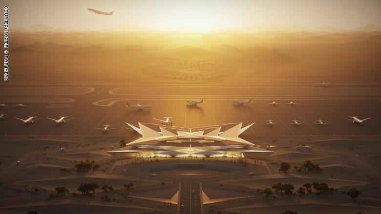 أما تصميم المطار فهو من عمل شركة "فوستر آند بارتنرز" للهندسة المعمارية، ومقرها المملكة المتحدة، والذي يبدو مستوحى من الوهم البصري لسراب الصحراء، بينما تقوم مجموعة الاستشارات والهندسة "Egis" بتصميم المخطط العام للمطار.