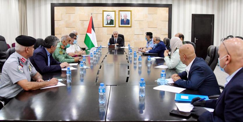 بحث رئيس الوزراء محمد اشتية مع قادة الأجهزة والهيئات الأمنية، الإجراءات الجديدة للحد من تفشي فيروس كورونا، على ضوء توصيات اللجان الصحية، بعد وصول الإصابات إلى معدلات كبيرة، وذلك قبل رفع التوصية النهائية إلى الرئيس محمود عباس.