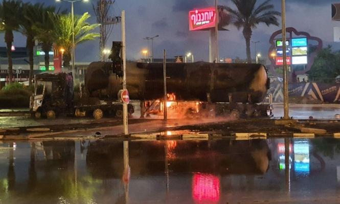 حادث طرق في حيفا يتسبب باشتعال النار بصهريج غاز