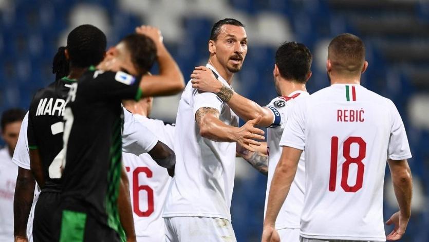 أحرز المهاجم المخضرم زلاتان إبراهيموفيتش هدفين في الشوط الأول ليمنح ميلان الفوز 2-1 خارج ملعبه على عشرة لاعبين من ساسولو يوم أمس الثلاثاء ويظل سجله خاليا من الهزائم منذ استئناف الموسم ويضمن التأهل للدوري الأوروبي.