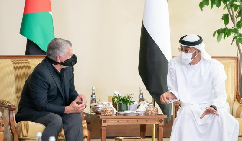 بحث الملك الأردني عبد الله الثاني والشيخ محمد بن زايد آل نهيان ولي عهد أبوظبي، عددا من القضايا الإقليمية والدولية ذات الاهتمام المشترك، وفي مقدمتها القضية الفلسطينية.