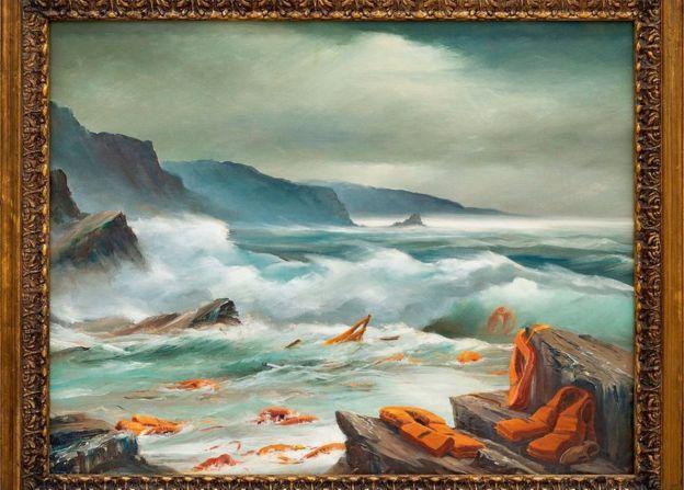وبيعت الثلاث لوحات، التي تتناول موضوعا واحدا وتمثل مشهدا مكملا لبعضه البعض للبحر المتوسط تنتشر وسط أمواجه سترات نجاة للاجئين، في قاعة سوذبي للمزادات الثلاثاء بعد أن تبرع بها بانكسي لمستشفى للأطفال في بيت لحم.