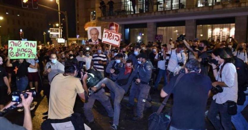 وشهدت الفترة الأخيرة سلسلة من الاحتجاجات ضد نتنياهو على خلفية تهم الفساد وسوء إدارة حكومته لأزمة كورونا وتبعاتها الإقتصادية.
