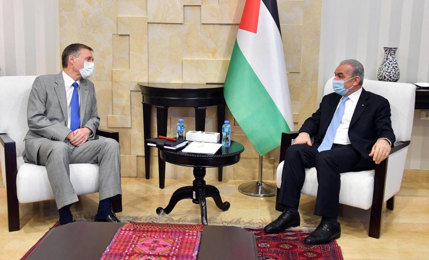 بحث رئيس الوزراء محمد اشتية، اليوم الثلاثاء في مكتبه برام الله، مع القنصل البريطاني العام فيليب هول، آخر التطورات والمستجدات السياسية.