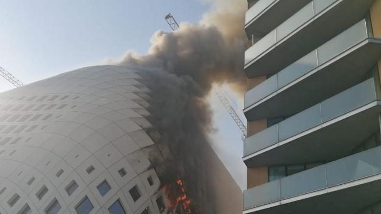 وقال شاهد من رويترز إن النيران كانت مشتعلة في جزء من أحد جوانب المبنى قبل أن يتمكن عمال الإطفاء من إخمادها.