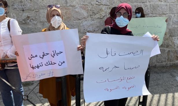 واحتشدت المشاركات تلبية لدعوة تجمع المؤسسات التنموية النسوية ببيت لحم في منطقة باب الزقاق، ورددن شعارات منددة بجرائم القتل والعنف وطالبن بوضع حد لها.