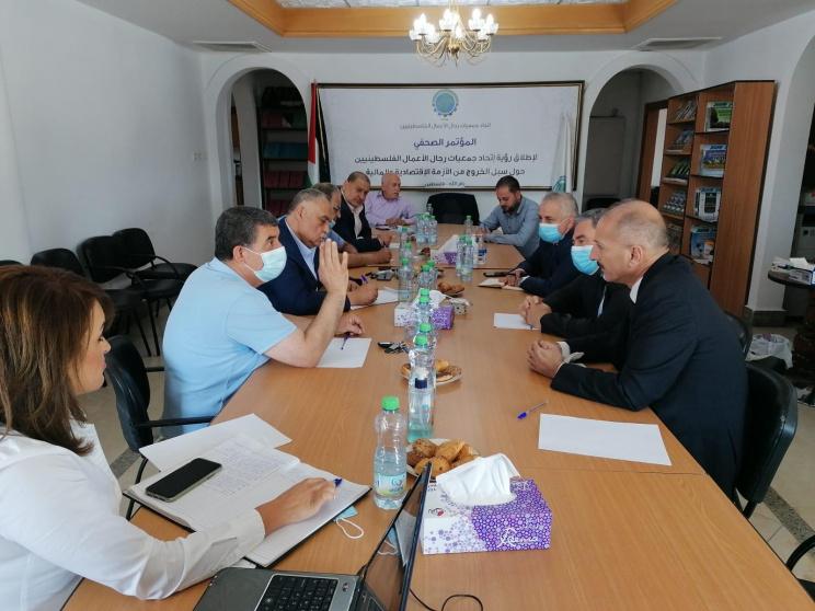بحث إتحاد جمعيات رجال الأعمال الفلسطينيين في مقر الاتحاد بمدينة البيرة، مع بنك فلسطين والبنك الإسلامي العربي آفاق التعاون المشترك للبدء في تطبيق رؤية جديدة بالشراكة مع مؤسسات القطاع الخاص والقطاع المصرفي للخروج من الأزمة الإقتصادية والمالية التي تعاني منها فلسطين جراء الأزمة السياسية والآثار الإقتصادية المترتبة عن جائحة كورونا.