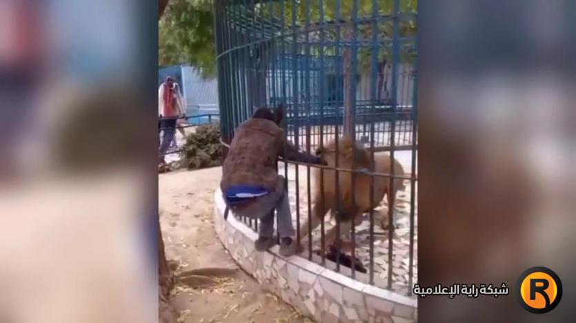 فيديو مرعب.. أسد يعض يد عامل في حديقة حيوانات