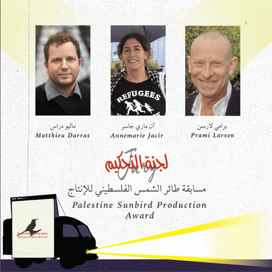 وتضم لجنة التحكيم عن جائزة طائر الشّمس الفلسطيني للإنتاج كل من: المخرج ومحرر الأفلام وكاتب السيناريو الدينماركي برامي لارسن، وهو مدير "ورشة عمل الأفلام" في كوبنهاجن منذ العام 1995، إذ يدير بدوره برنامج المواهب الذي يدعم صناع الأفلام الصاعدين. كما ويعمل لارسين جاهداً، منذ العام 2013، على إيجاد نوع من التعاون بين برامج المواهب في الدنمارك والخارج، وفي هذا السياق، أطلق شبكات عدة منها: “شبكة مواهب الأفلام" في الدنمارك، و"المواهب الشمال أطلسية" و"المواهب الشابة الأوروبية".
