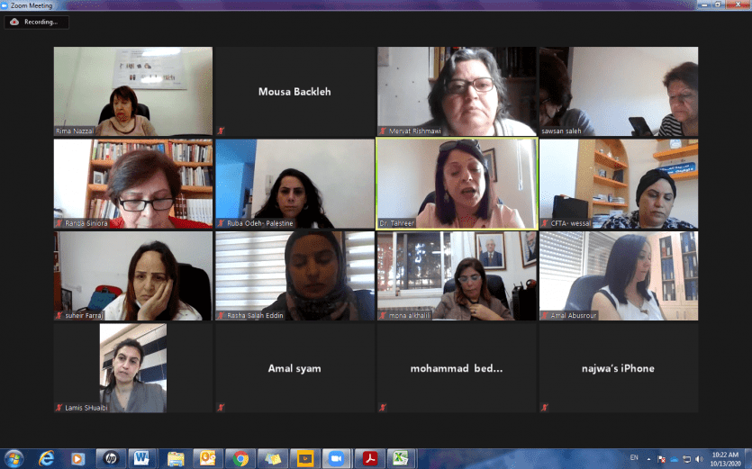 استضافت مؤسسة "مفتاح" بالتنسيق مع الائتلاف النسوي لتطبيق قرار مجلس الأمن 1325 في فلسطين جلسة خاصة عقدت يوم الثلاثاء الموافق 13/10/ 2020 لمناقشة الخطة الاستراتيجية للضغط والمناصرة للائتلاف النسوي 2020-2023، عبر تطبيق زووم، والتي جاء إعدادها نتاجاً لسلسلة من اللقاءات وورش العمل مع المؤسسات ذات الصلة والنساء الفلسطينيات في فلسطين والمنفى التي نفّذتها مؤسسة "مفتاح" خلال الفترة الماضية من العام 2020 بما شملها دراسة تقدير احتياجات وأولويات النساء الفلسطينيات ضمن عناصر القرار الأممي 1325 والمعدّة من قبل "مفتاح" لغرض إعداد الخطة الاستراتيجية.