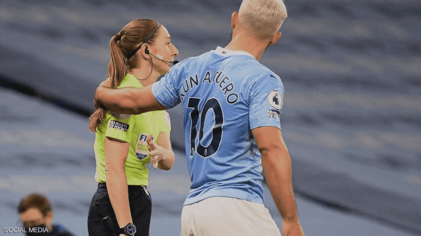 ووضع أغويرو يده خلال أحداث مباراة أرسنال، ضمن الدوري الإنجليزي الممتاز، بوضع يده على كتف الحكم المساعد سيان ماسي-إليس، بعد أن أشارت في كرة مشتركة إلى رمية جانب لصالح أرسنال،