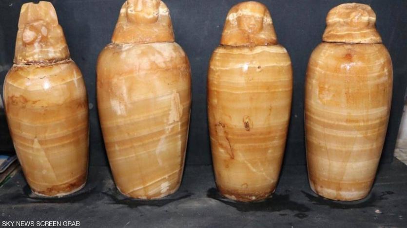 ووصف وزيري الأواني التي تم العثور عليها بأنها "من أجمل الأواني"، موضحا أنها مصنوعة من الألبستر، وهي على هيئة أبناء حورس الأربعة ونقش عليها ألقاب وأسماء المتوفى.