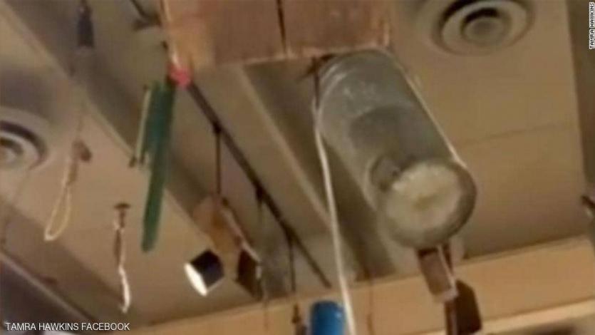 ولم تنتبه هوكينز إلى تدلي حبل مشنقة من سقف المطعم باعتبارها جزءا من الديكور، لكن أحد أصدقائها في صفحتها في فيسبوك لاحظ وجودها معلقة، ومن هنا بدأت الصور تشق طريقها بسرعة في وسائل التواصل الاجتماعي.