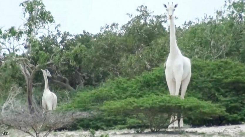 وتتسبب سمة وراثية نادرة تسمى "اللوسيزم" في اللون الأبيض للزرافة، التي تواجه خطر الصيد الجائر في السافانا القاحلة بالقرب من الحدود الصومالية.
