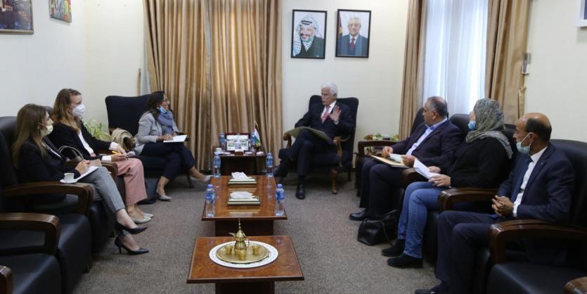بحث وزير التربية والتعليم أ.د. مروان عورتاني، اليوم، مع مدير مكتب منظمة اليونسكو في فلسطين نهى باوزير؛ آليات تعزيز مرتكزات الشراكة والتعاون لخدمة التعليم؛ خاصة في ظل المتغيرات والتحديات التي يفرضها المشهد الكوروني.