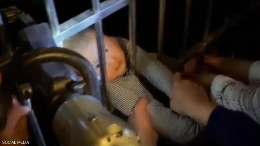 وفي خلال دقائق وصلت قوات الدفاع المدني التي نجحت في تخليص الصغير بعد قطع ألواح الحديد، في عملية مثيرة تم توثيقها بالفيديو.