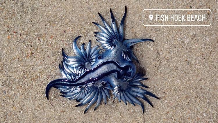 ووقع العثور على المخلوق المسمى Glaucus atlanticus، والمعروف باسم التنين الأزرق، على شاطئ Fish Hoek بالقرب من كيب تاون في جنوب إفريقيا من قبل امرأة تدعى ماريا فاغنر، كانت في نزهة على الأقدام، بعد أن جرفته الأمواج إلى الشاطئ.