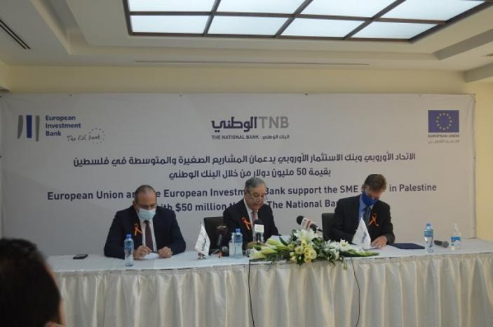 وقع البنك الوطني وبنك الاستثمار الأوروبي (EIB)، اليوم الاثنين، اتفاقية بقيمة 50 مليون دولار لتعزيز قدرة القطاع الخاص الفلسطيني على الصمود، في ظل ازمة تفشي جائحة كورونا وانعكاساتها على الاقتصاد الوطني.