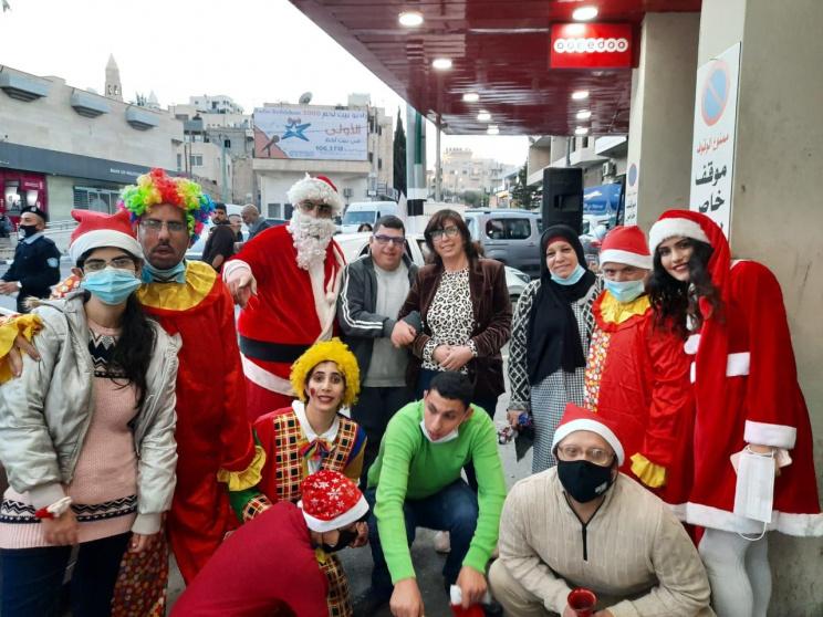 احتفل مركز الواحة للأشخاص ذوي الإعاقة العقلية التابع لمؤسسة لجان العمل الصحي في بيت ساحور وبالتعاون مع شرطة المدينة ومتطوعين بقرب أعياد الميلاد المجيدة وذلك وسط بيت ساحور.