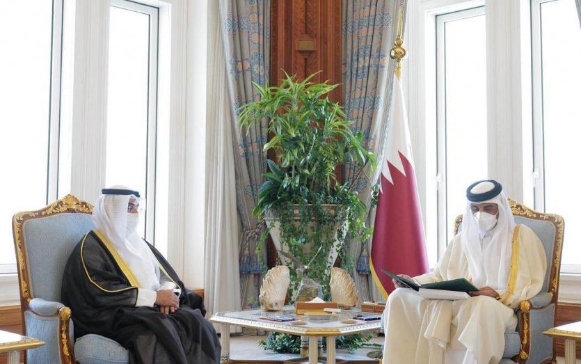 وقام بتسليم الرسالة نايف فلاح الحجرف الأمين العام لمجلس التعاون لدول الخليج، خلال استقبال امير قطر له بمكتبة بالديوان الأميري صباح اليوم.
