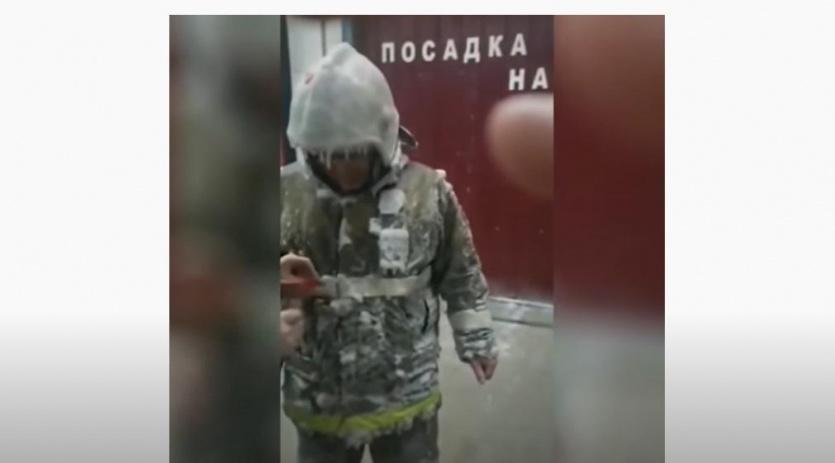 وقد نشرت شبكات التواصل الاجتماعي مقطع فيديو مذهل أظهر عمل رجال الإطفاء في ياكوتسك حيث ساعدوا زميلهم في التخلص من الدرع الجليدية بعد مشاركته في إطفاء الحريق وتجمد الماء على بزته. واستخدموا فؤوسا لكسر الجليد الذي غطى جسمه من الرأس حتى القدمين.