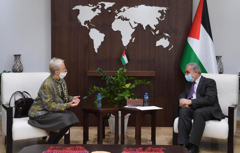 وثمن اشتية الدعم البلجيكي المستمر لفلسطين خاصة قطاع التعليم والمجتمع المدني وتمكين النساء وحقوق الانسان والمجتمع المدني، إضافة الى دعم الاونروا، مشيدا بموقف بلجيكا الرافض للضم وصفقة القرن ودعم حل الدولتين وحق الشعب الفلسطيني في إقامة دولته المستقلة.