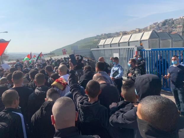 وفي أم الفحم، اعتدت شرطة الاحتلال على المتظاهرين، مستخدمة مركبة رش المياه العادمة لتفريقهم.