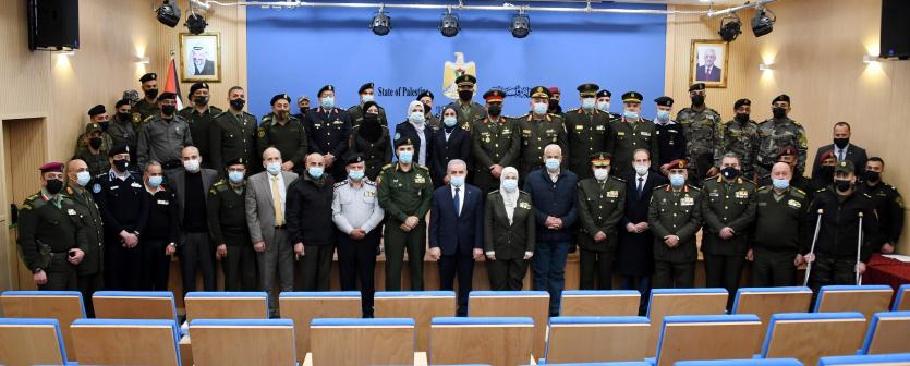وتابع رئيس الوزراء: "فخورون جدا بشهادة الخبراء الدوليين الذين قالوا إن أداء المؤسسة الأمنية الفلسطينية أفضل أداء في الشرق الأوسط. وهذا الأمر بالنسبة لنا نيشان على صدورنا، وقد أثلج صدر الرئيس وصدورنا، أن يشهد العالم لكم بأدائكم غير المسبوق بالمقارنة مع دول المحيط".