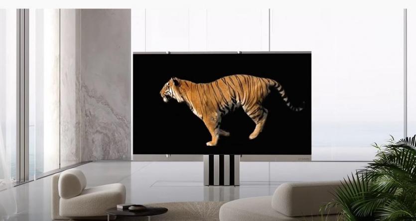 وأكثر ما يميز تلفاز M1 الجديد هو أن شاشته تتكون من 5 لوحات عرض تعمل بتقنية MicroLED، يمكن طي هذه اللوحات عبر محاور خاصة أو فردها بجانب بعضها لتشكل مجتمعة شاشة كبيرة بمقاس 165 بوصة قادرة على عرض فيديوهات 4K.