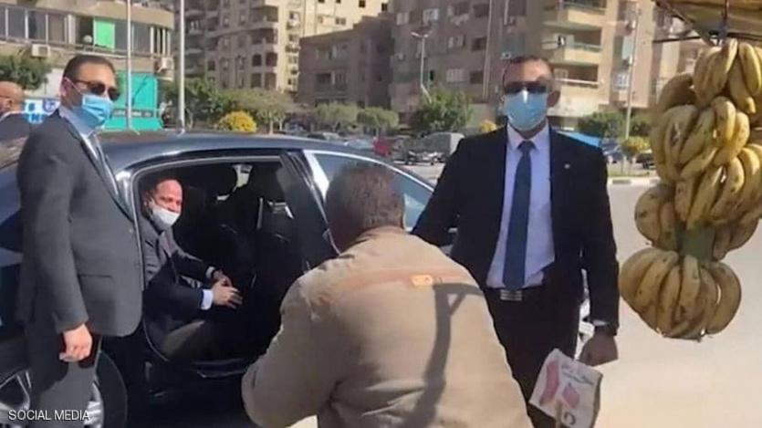 ضجت وسائل التواصل الاجتماعي في مصر بفيديو للرئيس عبد الفتاح السيسي خلال توقف سيارته أمام أحد الباعة المتجولين في منطقة مدينة نصر شرقي القاهرة لشراء الفاكهة.