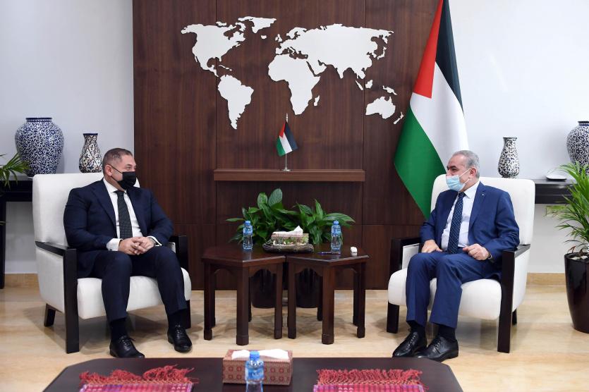 استقبل رئيس الوزراء محمد اشتية، اليوم الأحد، في مكتبه برام الله، السفير المصري لدى فلسطين طارق طايل، حيث أطلعه على آخر المستجدات السياسية، وجهود الحكومة في مواجهة فيروس "كورونا".