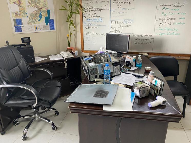 وشملت عملية الخلع والتكسير الأبواب الرئيسة والداخلية بالإضافة للتخريب في المكان وتفكيك الأجهزة فيه مع العلم أن مداخل المؤسسة وأقسامها الداخلية تحتوي العديد من الشارات الدولية المتعارف عليها والتي تبين طبيعة عملها في المجال الصحي المدني والإنساني.