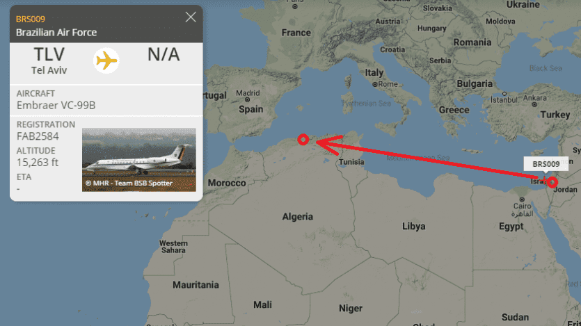 زعم صحفيان إسرائيليان أن طائرة تابعة لسلاح الجو البرازيلي هبطت في مطار الجزائر الدولي هواري بومدين، مساء امس الثلاثاء، قادمة برحلة مباشرة ولأول مرة في التاريخ من إسرائيل للجزائر.