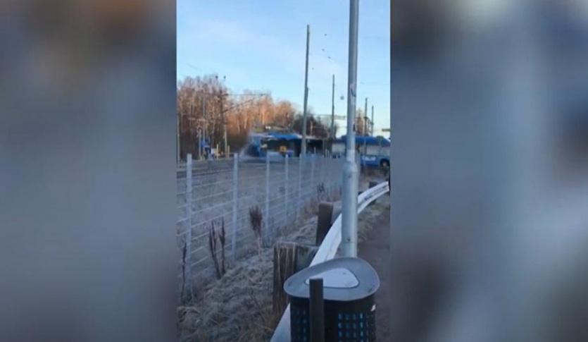 أظهر مقطع فيديو لحظة تصادم قطار ركاب بحافلة كانت متوقفة على سكة حديد في غوتنبرغ بالسويد.