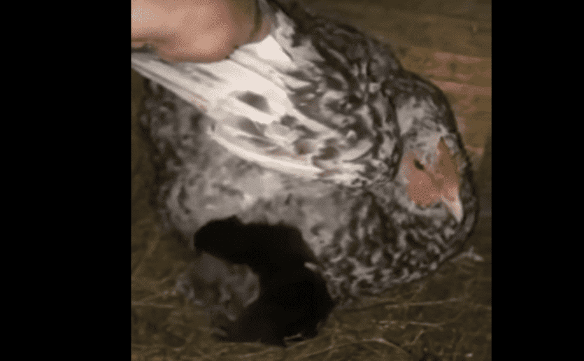 سجلت حالة فريدة جدا لجلوس دجاجة على 7 قطط صغيرة جدا ورعايتها والاهتمام بها كأنها أما لها.