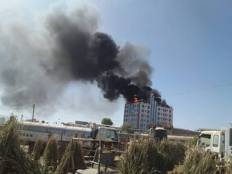 فيديو.. حريق بأكبر فندق في صعدة شمال اليمن