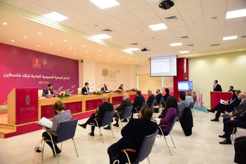 وفي سياق الاجتماع، وافقت الجمعية العمومية على أجندة الاجتماع وعلى توصية مجلس الإدارة بتوزيع مبلغ 10,404,000 دولار أمريكي من الأرباح المتحققة خلال العام الماضي أي ما يعادل 5% من رأس المال المدفوع على المساهمين مقسمة كأرباح نقدية بقيمة8,323,200  دولار ونسبتها 4% من رأس المال، وأسهم مجانية بقيمة 2,080,800 دولار أميركي ونسبتها 1% من رأس المال على المساهمين المسجلين لدى بورصة فلسطين حتى مساء يوم الثلاثاء الموافق 2021/03/30 كل بقدر نصيبه في رأس مال البنك. حيث سيقوم البنك بالبدء بتوزيع الأرباح بشكل فوري على حسابات المساهمين المعتمدة لدى البنك، ووفق آلية سيتم الإعلان عنها. وبذلك، سيرتفع رأس مال البنك من 208 مليون دولار أمريكي إلى 210 مليون دولار.