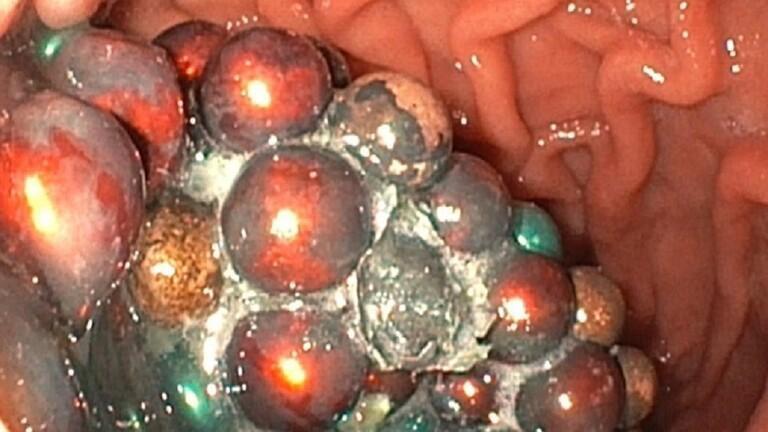 وأدرك الأطباء أن الكرات المغناطيسية لا تزال في المعدة على الرغم من عددها الكبير، ويعني ذلك أنه يمكن الاستغناء عن التدخل الجراحي، كما يمكن سحب الكرات المغناطيسية أثناء عملية التنظير باستخدام يد آلية خاصة.