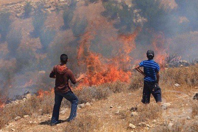 مستوطنون يضرمون النار في الأراضي الزراعية جنوب نابلس