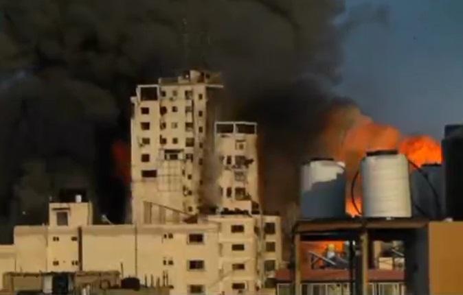 شاهد.. طائرات الاحتلال تدمر برج الشروق وسط مدينة غزة