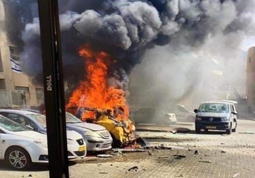 شاهد.. صواريخ غزة تصيب المباني والسيارات في عدة مدن