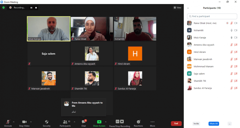 واشرف على التدريب استاذ الاعلام في جامعة بيرزيت معز كراجة بحضور ومشاركة اثنى عشر مستفيد من طلاب وخريجي تخصص الصحافة والاعلام من مختلف المخيمات الفلسطينية.