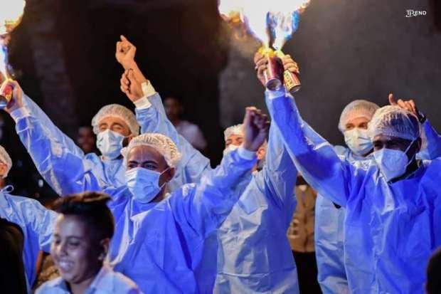 وتبين، بحسب أصدقاء الطبيب، أن العريس يدعى محمد عباس، من قرية الجبلاو، بدائرة مركز قنا، وأنهم اتفقوا مع بعضهم على أن يحتفلوا بزفافه بشكل فريد، فقرروا ارتداء ملابس العزل، والذهاب بها لحضور العرس، كدعم معنوي لزميلهم، في ظل المعركة التي تخوضها الأطقم الطبية بمواجهة فيروس كورونا المستجد.