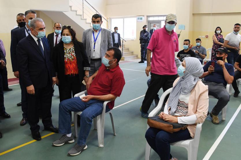 تفقد رئيس الوزراء محمد اشتية، اليوم الأحد، مركزي التطعيم والفحص الخاصين بـ "كورونا" في رام الله، بحضور وزيرة الصحة مي كيلة وعدد من كوادر الوزارة.