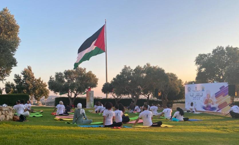 احتفلت الممثلية الهندية لدى فلسطين، اليوم الإثنين، باليوم العالمي السابع لليوغا، بالتعاون مع مدينة روابي ومركز بيت الشمس للتنمية الذاتية ومركز الكارما.